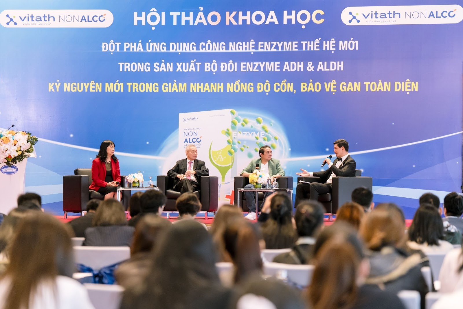 Mới đây, tại Trung tâm Hội nghị Quốc gia, Công ty Cổ phần Dược phẩm Vitath vừa tổ chức hội thảo khoa học “Công nghệ enzyme - Bước ngoặt trong sản xuất viên ngậm Non Alco”. Sự kiện đã quy tụ nhiều chuyên gia đầu ngành và hàng trăm khách mời nam giới, cùng tìm hiểu giải pháp giảm nhanh nồng độ cồn, bảo vệ gan toàn diện đang được quan tâm hiện nay.